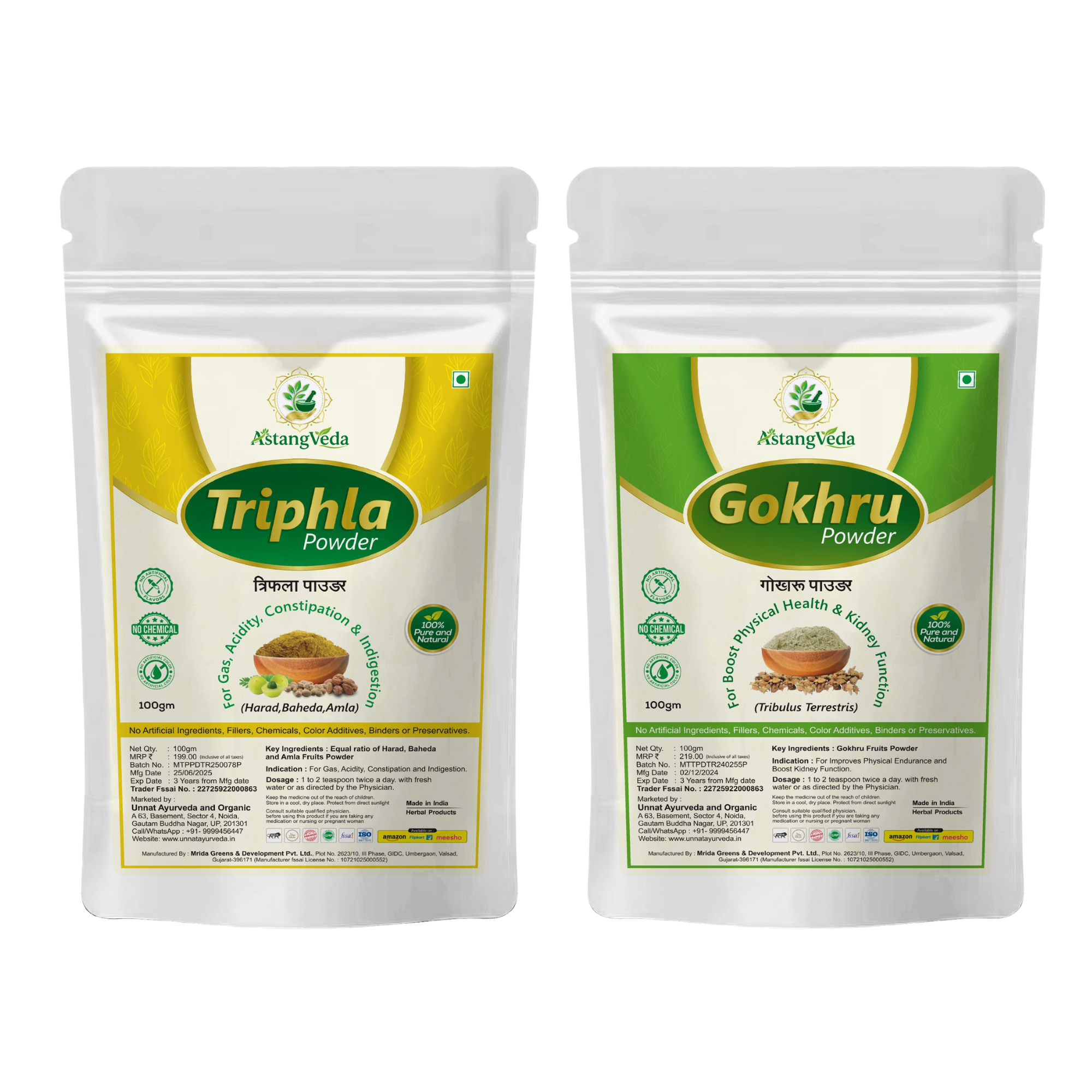 Experience the power of ancient Ayurveda with our Triphala & Gokhru Powder Combo — A complete wellness pack designed to support digestion, detoxification, immunity, stamina, and kidney health.